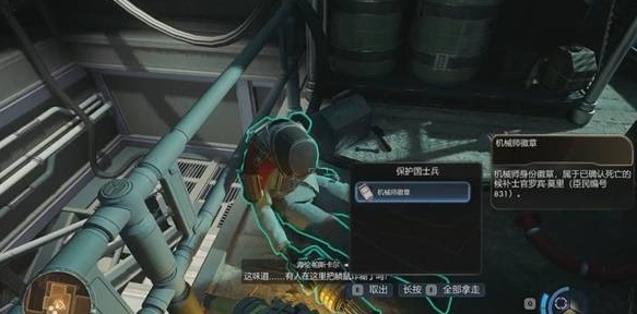 传送过来后继续跟着目标点走。来到目标点的二楼,在这边会有一个尸体,在尸体身上能获得“机械师徽章”。
