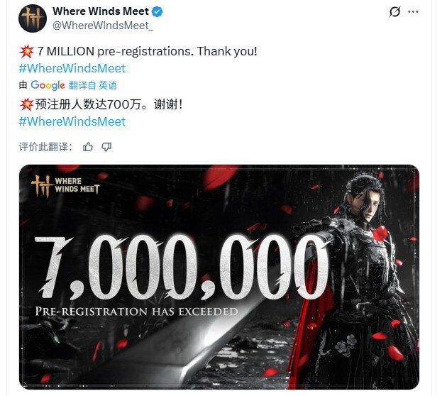近日网易官方宣布,《燕云十六声》国际服(WHEREWINDSMEET)预注册人数已突破700万人。这真是傲人的成绩,值得庆祝!