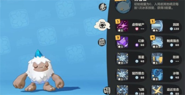 雪豆丁的核心在于被动特性“打雪仗”。当队伍中其他宠物使用冰系技能时,即便雪豆丁未上场,它也能自动积累能量。能量达到指定数量后,其部分技能威力或效果会显著提升。