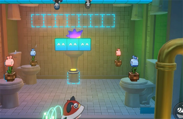 3、小游戏2:通过射箭攻击,使两个虫子同时踩下按钮,右侧墙壁同时消失。