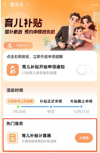 国家育儿补贴为育儿家庭送来福利,而在支付宝上申请补贴十分方便。目前,支付宝平台已开放育儿补贴预约及相关功能。家长们打开支付宝,搜索 “育儿补贴”,即可进入对应小程序,按照系统提示操作,就能完成预约,还能提前了解补贴申领金额等信息。下面就为大家梳理支付宝育儿补贴的申请方法,助你轻松办理。