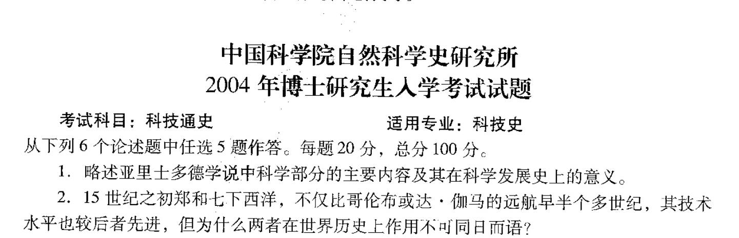 中国科学院自然科学史研究所2005年科学技术史考博真题