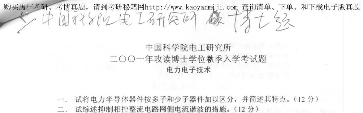 说明:本站提供的中科院电工所考博真题来源于中科院电工所研究生院,除标注有“回忆版”字样的试题外,其余均为原版扫描,权威可靠;回忆版试题由当年参加硕士研究生入学考试考生回忆,内容完整。